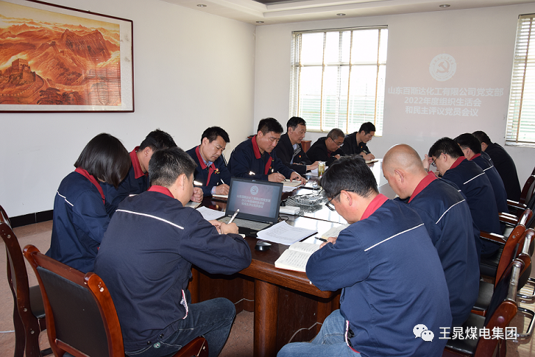 根据集团党委《关于召开2022年度基层党组织组织生活会和民主评议党员的通知》要求,报经集团党委批准,3月14日上午,百斯达党支部在公司办公楼三楼会议室召开2022年度组织生活会和民主评议党员大会,集团公司党委委员、安全总监侯贺金同志到会指导,集团公司副总工程师、党办主任王超同志陪同参加?;嵋橛芍Р渴榧峭跖敉局鞒?,党支部全体党员参加会议。